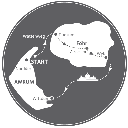 • Benötigte Ausrüstung: Regenjacke, kurze Hose, Wechselbadehose, Sonnenschutz, Medikamente (wenn nötig), Gastkarte der Insel Amrum (wird auf Föhr evtl. kontrolliert)